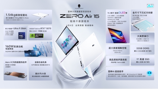 雷神ZERO Air 15将于4月8日全网开启预售,敬请期待!